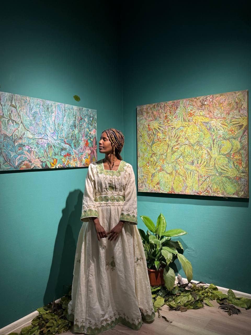Selamawit came to Moscow in person—and that's a milestone in itself. At the opening, she met with guests, spoke about her journey, and explained why people and plants are intertwined in her paintings.